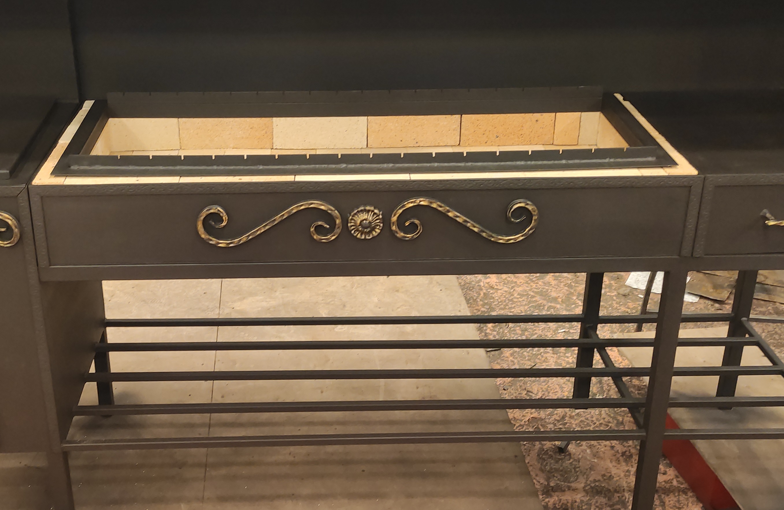 Базовая стоимость мангала как на фото. Указанные размеры на схеме не являются окончательными их можно корректировать или можем предложить выполнить индивидуальный проект по вашим параметрам.